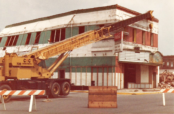 I’m standing on Cherokee Street, the crane is sitting on New Street. Around 1980 or so, somebody, maybe the city, decided to tear down the old Rialto Theater building. When I was a kid, it was referred to as “The Rathole” and mom wouldn’t let me go there. By the time of this picture, it had been AY’s Restaurant for a number of years and I think there had been a billiards parlor (pool hall) in that side door. Upstairs were apartments.