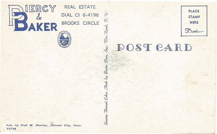 The postcard picture was taken by Fred W. Stanley of Johnson City, printed by our old friends Dexter Press on West Nayak NY. Inventory number 73775.