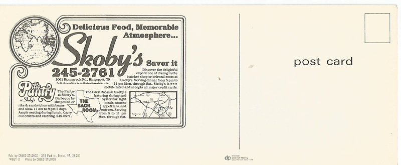 I miss Skoby’s. I didn’t eat there often, but I always enjoyed it when I did. The Back Room was rather a middle-class dive, but the restaurant’s food was excellent.
