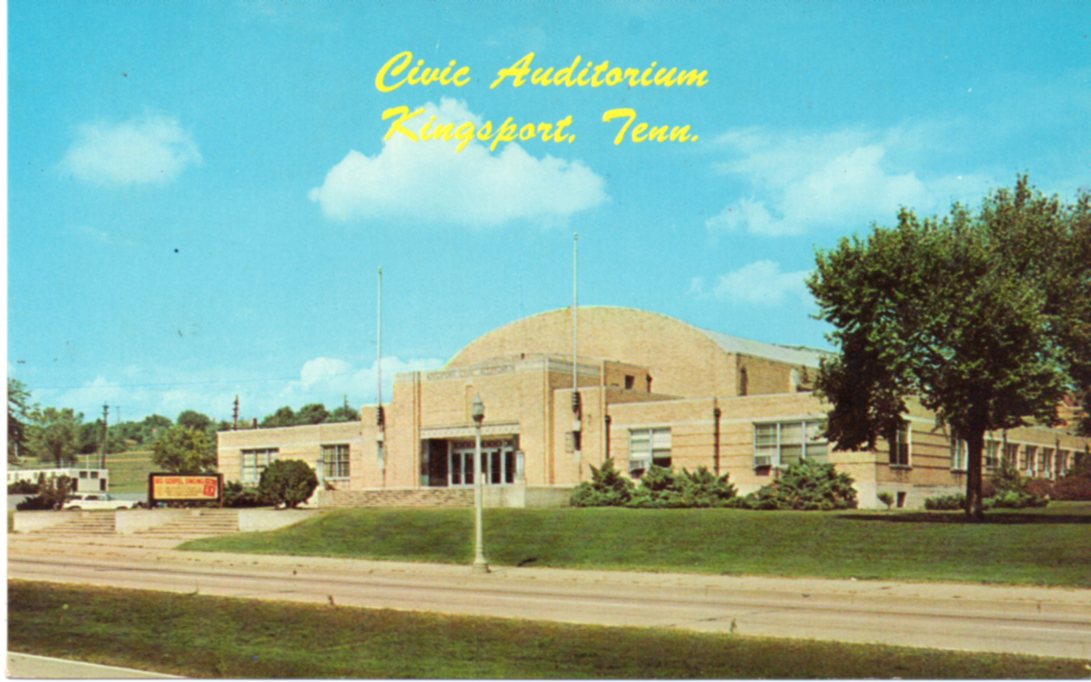 This is a Haynes Publishing postcard (printed by Dexter) from the mid-60s. When the photo was taken, this barrel-roofed building was over 40 years old; it was finished in 1940 as the Kingsport Civic Auditorium and Armory. It was built under the Public Works Administration. If the resolution of the image were better, I might be able to read more of the sign, but I think it’s for a wrestling match. I checked the Times-News archives, but couldn’t match anything up.