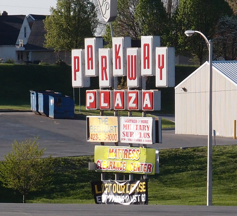 In my previous (August, 2015) posting on Parkway Plaza, I was a little dismissive of it, which was wrong. When this Plaza was built, in 1961, it was poised to take advantage of the fire hose of traffic heading into Kingsport from the Southwest Virginia/Southeast Kentucky region. Well, then I-26 (completed in 2003) went in, bypassing Kingsport and taking the fire hose with it.