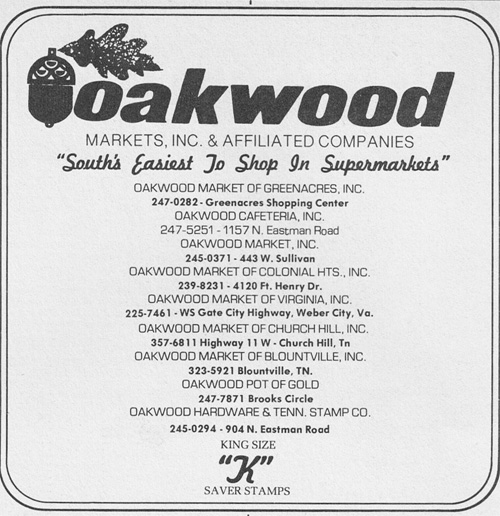 Well, 200 years from 1776 to 1976. Health above all! By using DeWitt nostrums, of course. Anyway, Holston Pharmacy opened its Boone Street location in November, 1926, in the Bandy-Price Building (now Two Dad’s Restaurant) at Five Points (that’s now considered an old designation. It’s the intersection of Charlemont, Boone, East and West Sullivan and Cherokee Streets). The location was advertised as having a bright, all-glass store front with entrances facing Five Points, Sullivan and Charlemont. The owner/operator was Pharmacist W.D. Westmoreland. Holston Pharmacy then had locations on Broad Street, on the Bristol Highway and in Surgoinsville. I saw that at one time later on, the Pharmacy had a sales event featuring a special price on razor blades for Gillette razors…with a free styptic pencil. And, if you ever shaved with a Gillette razor, you darn sure needed a styptic pencil! (note: a styptic pencil was a pencil-shaped stick of aluminum salts…it helped clot the blood when you nicked yourself with that terrible razor) (and you would…)