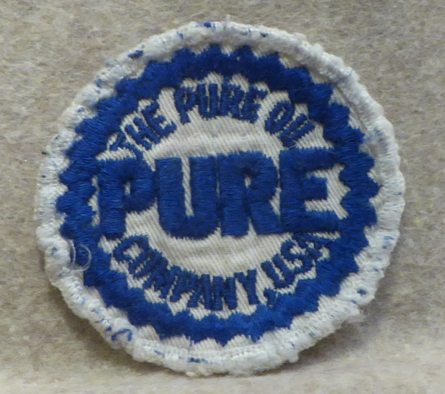 Pure Oil Company Leave a reply The Pure Oil Company brand ceased to exist in 1970. This is a cloth patch about 2.75″ in diameter. I seem to recall that there was a Pure gas station at the interesection of Center Street and Memorial Boulevard, just west of the fire station. Share this: Share on X (Opens in new window) X Share on Facebook (Opens in new window) Facebook Like Loading... Related