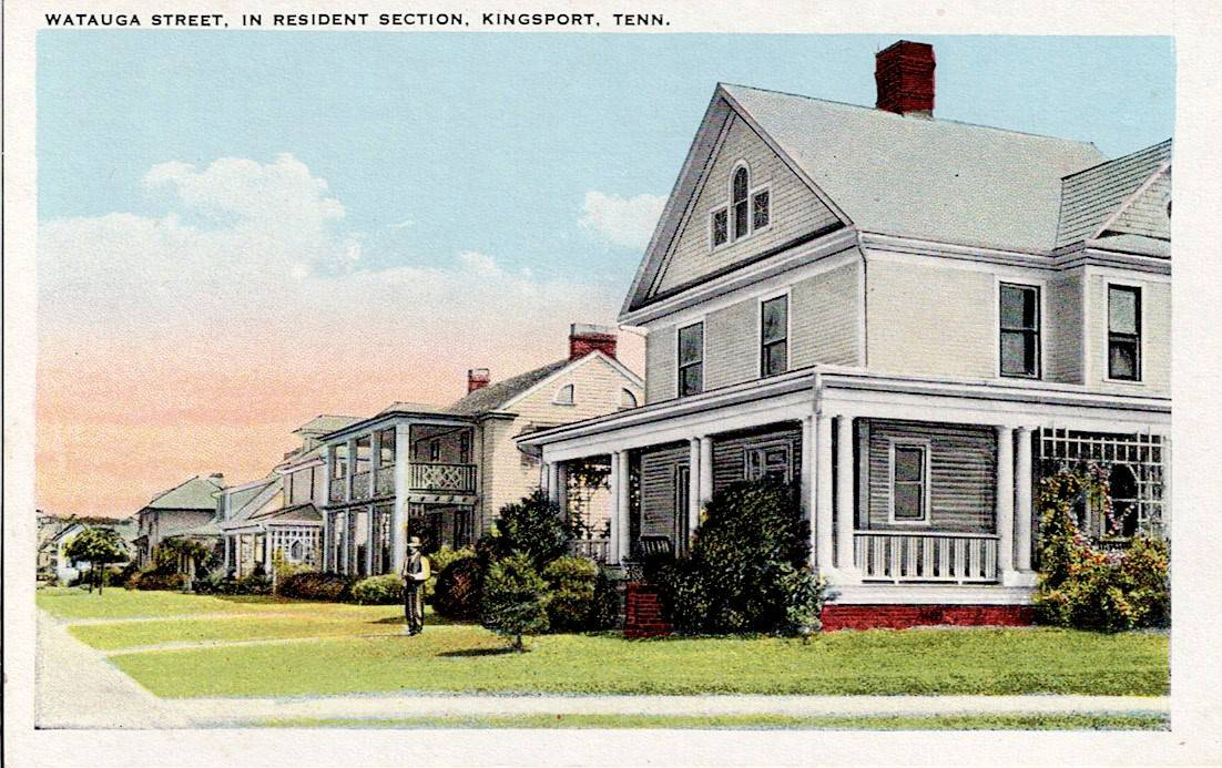 This post card shows the Kingsport Country Club and Golf Links clubhouse, located near what is now the intersection of Lamont Street and Pineola Avenue. The golf course, designed by the famed Albert Warren Tillinghast (1874 – 1942), opened in 1919 and closed in 1953. Tillinghast, acquired the epithet “Tilly the Terror” for his challenging and frustrating courses. The American Legion apparently used the clubhouse for a period after 1953, but it was eventually torn down when the Greenacres neighborhood was developed. This a one of a series of early Kingsport post cards commissioned by T. J. Stephenson and printed by Tichenor Brothers in Boston. I don’t have an exact date for this card, but the Stephenson cards were generally published in the 1920s.