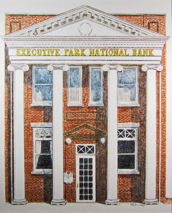 This, of course, is on the corner of Main and Broad Streets.  It was a bank off and on for decades.  Back in the 70s, there was a watch repair shop across the front of this building (the portico and columns were gone at that time).  An earlier pencil drawing I did of this location shows the marks of where the roof of the watch shop was.