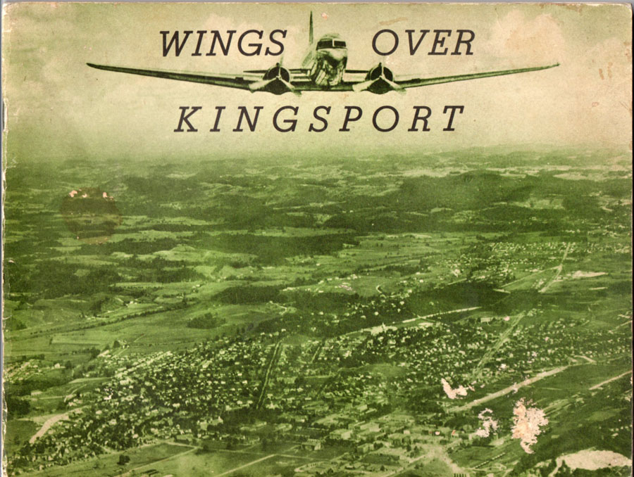 1) AIR VIEW OF KINGSPORT, TENNESSEE, LOOKING NORTHWEST. C-414 PM 1940. On the back: PHOTO BY ALVEY, PUB. BY C.G. SMITH, KINGSPORT, TENN. Printed by Allied Printing, Fort Wayne